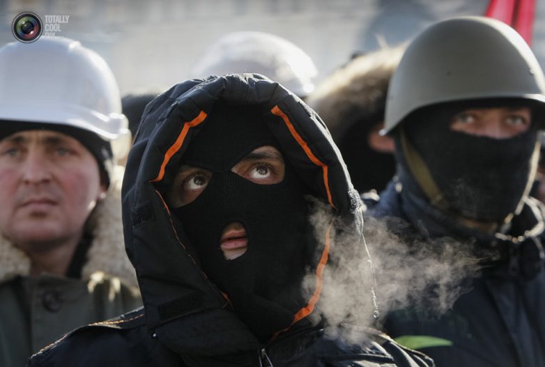 Протестующие на Майдане Незалежности в Киеве.