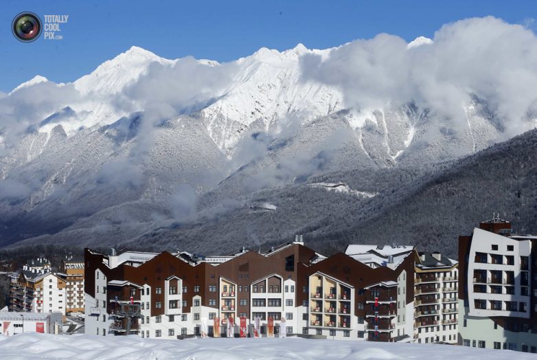 Олимпийская деревня на горнолыжном курорте «Роза Хутор» в Сочи.