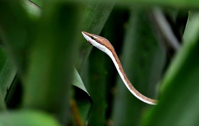 Муравей ползет по мексиканской остроголовой змее в национальном заповеднике Остинал, провинция Гуанакасте, Коста-Рика.