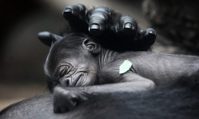 Новорожденная горилла в городском зоопарке Германии.
