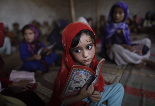 Четырехлетняя беженка Аиша Даоуд на религиозном занятии в мечети в Равалпинди, Пакистан.