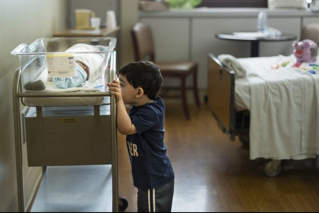 Малыш в первый раз видит своего брата.
