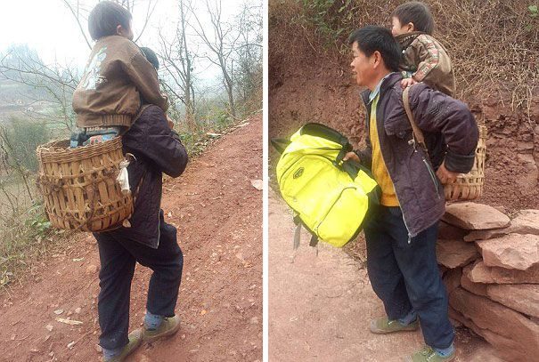 Что-ж он мальчонку-то на себе таскает.Это ведь тяжело.Да и ходит-то он по дороге, а не по пересечённой местности.Неужели нельзя инвалидную коляску из подручных средств сделать, ну или проще всего велосипед оборудовать вторым сиденьем для ребёнка.Ну или лошадку купить, чтобы отвозить на ней сына в школу.Ведь он-же работает его отец, значит имеет заработок и значит он не настолько беден, что не может позволить себе купить пусть даже старый велосипед.А каждый день по тридцать километров пешком — это только сумасшедший дурак ходит.Ведь скорость пешехода равна в среднем где-то, шесть-семь километров в час.На велосипеде это-же расстояние можно за двадцать минут спокойно проехать и потом ещё на работу, за пол часа доехать.Сразу экономится и время и силы, которые так нужны для работы.а этот китаец ведёт себя более чем странно.Или он специально таковым прикидывается, чтобы о нём все говорили: «вот посмотрите, какой он образцовый отец».Но мир не без добрых людей и соседи по кишлаку уж могли-бы ему подарить если не осла то тележку на колёсах или старый, ненужный им велосипед.Если у них там Китайцы все такие жадины-говядины и их чужое горе не волнует, то пусть этот Ю-Ху-Канг обратится ко мне. Я готов оказать помощь для ребёнка-инвалида.
