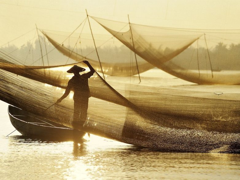 Все, что нужно — большая сеть и несколько палок из бамбука. (Фото Ly Hoang Long):