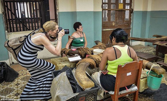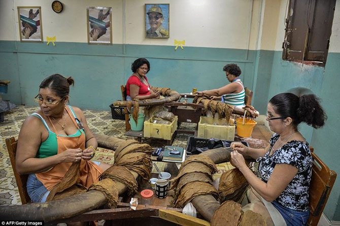 Днем ранее, чтобы скрутить сигары, работникам пришлось остаться на сверхурочные часы, чтобы подготовить листья табака для фестиваля. На фабрике сигар в Гаване это считается тяжелой работ.