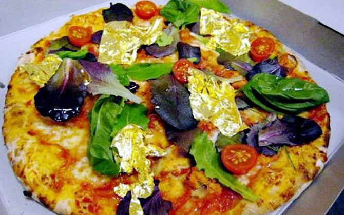 Эту пиццу за 4200 долларов приготовил Доменико Кролла, и это одно из самых дорогих блюд в мире. На 30-сантиметровой пицце вам выложат кусочки лобстера в коньячном маринаде, икру, смоченную в шампанском, шотландского копченого лосося, бальзамический уксус большой выдержки, вырезки оленины, прошутто, а поверх всего этого – позолоту в 24 карата, которую можно съесть!