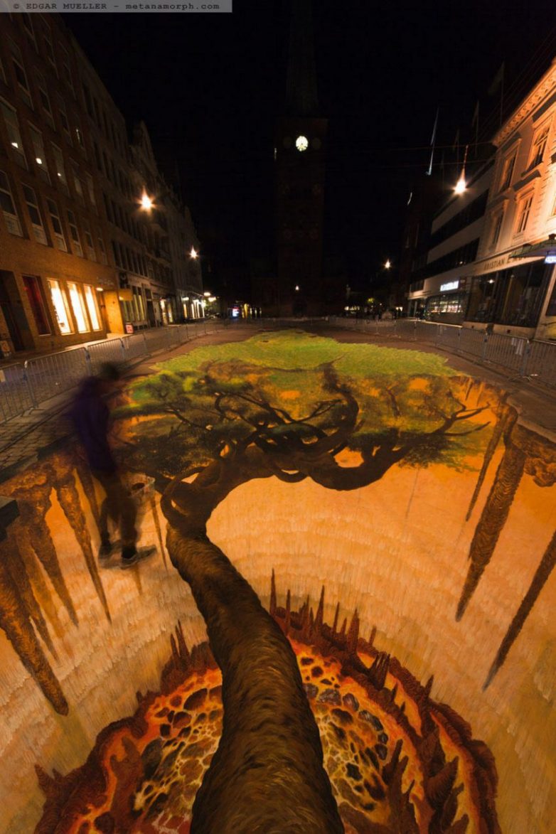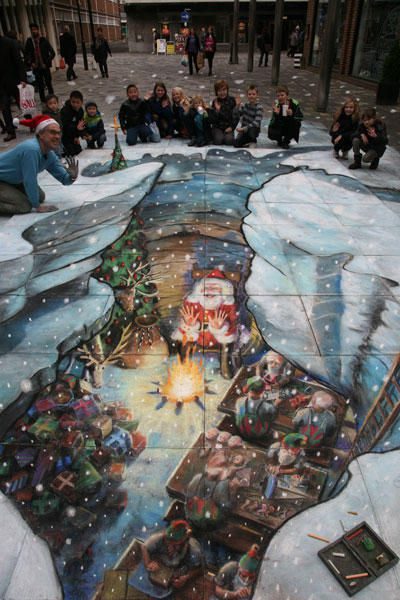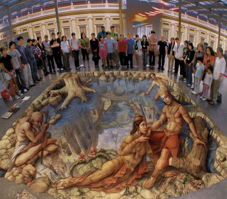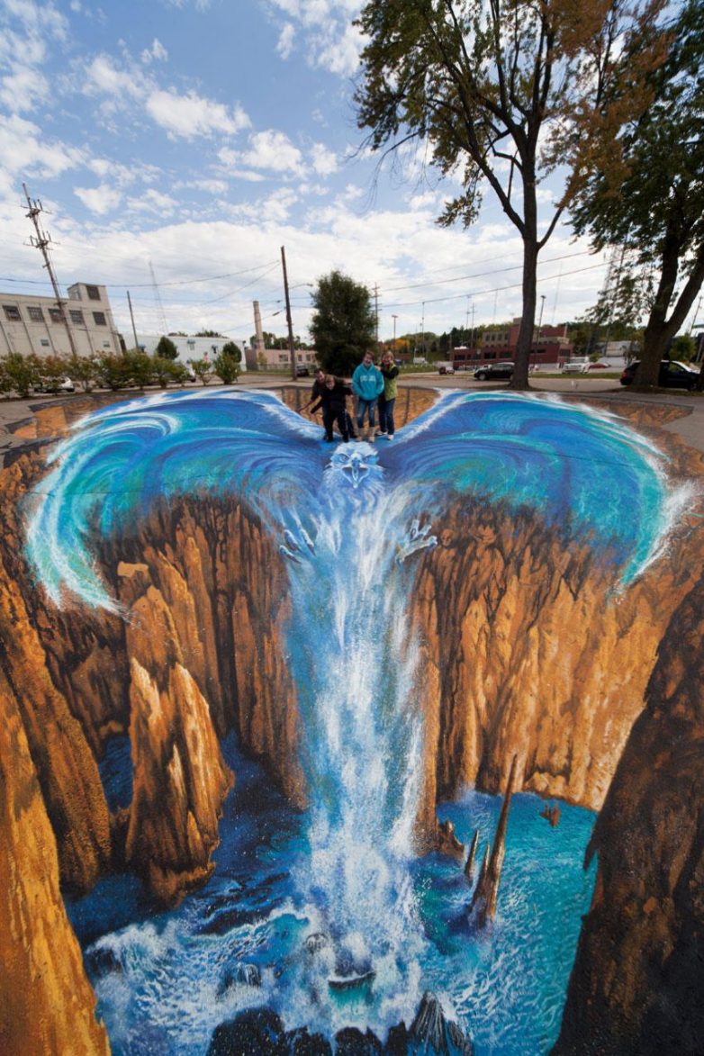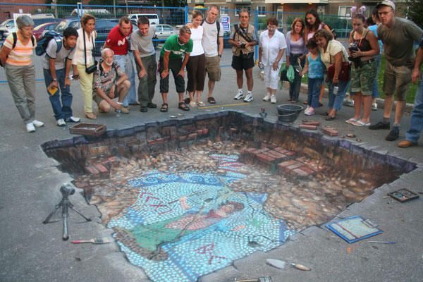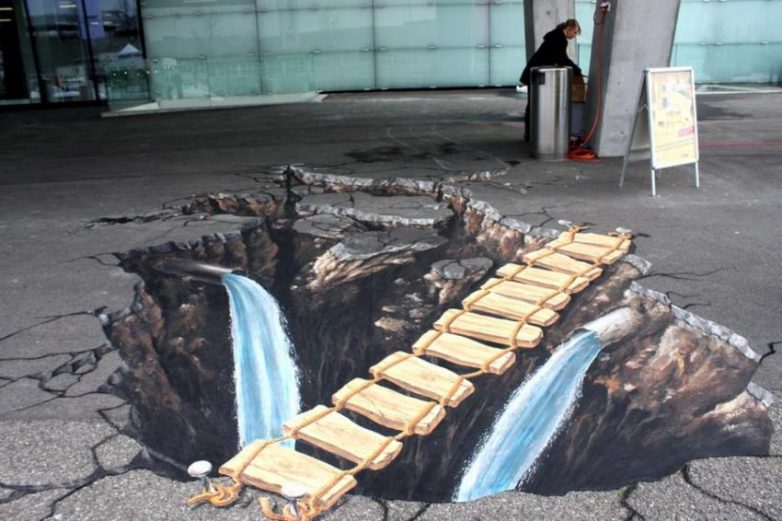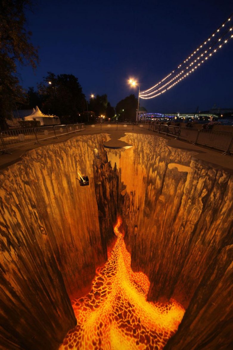 Здесь представлены изображения с «обманом зрения» от самых известных 3D-художников. Изображения объемные и выполнены мелом.