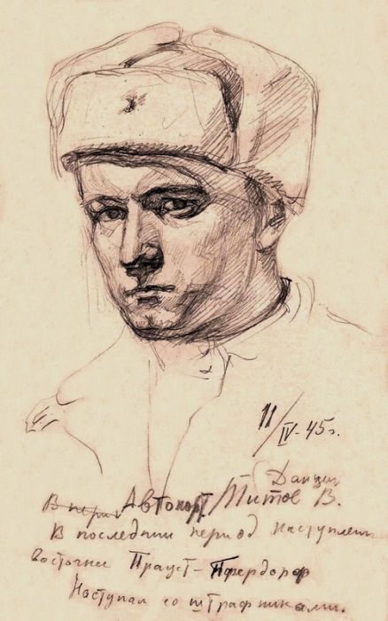 «На дороге стоит баррикада: листы шифера сложены на высоту три метра. Оборону держит «фолькштурм». Земля по обе стороны дороги затоплена водой. Наш офицер, это был Титов, пошел парламентером к баррикаде и привел с собой 28 немецких мальчишек с оружием, все 1929 года рождения, среди них несколько раненых. Молодые пацаны, все стрижены под полубокс. Пришел начальник штаба Барановский, посмотрел на них. Приказал забрать у немцев оружие и распустить всех по домам, что и было сделано…».