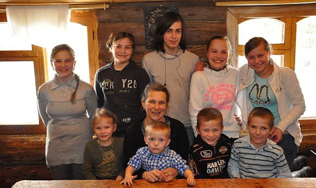 Марина показывает альбом, который она подготовила для конкурса вместе со старшими детьми. Десятки страниц, на которых словно солнечные зайчики улыбки детей, — семья встречает Новый год, Рождество, отмечает дни рождения, которые бывают здесь каждый месяц. Краткий рассказ о каждом из 16 детей — начиная со старшего, 26-летнего Антона, заканчивая младшим, 2-летним Матфеем, который сидит у мамы на коленях. Рядом суетятся средние дочки. Одни накрывают стол для чаепития, другие встречают местного Айболита — ветеринара Александра. Он пришёл сделать плановые прививки двум собакам и пяти кошкам, проведать новорождённых поросят. Ещё в хозяйстве корова и два телёнка.