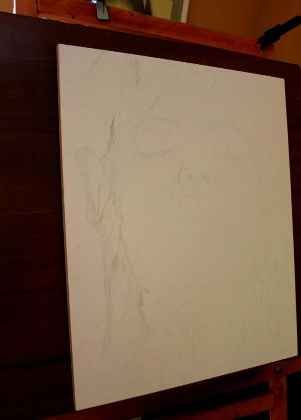 Он работает как струйный принтер, начиная рисовать с края листа. Использует простые карандаши и уголь. На создание одного портрета у художника уходит по 200 часов работы.