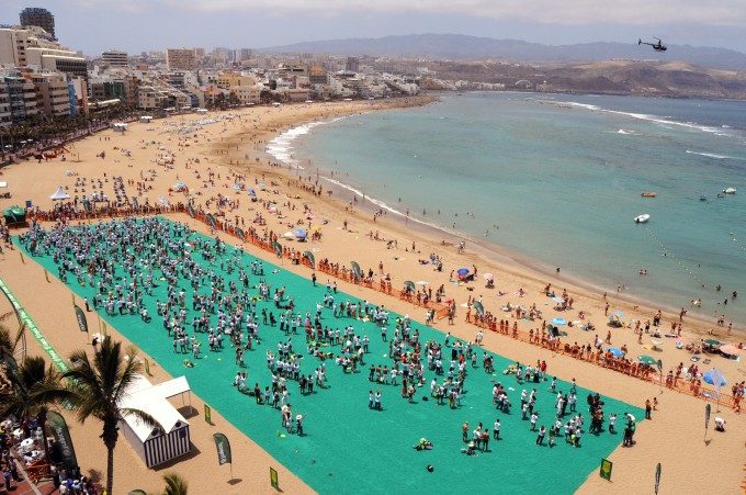 Самое большое пляжное полотенце имеет 87,14 м (285 футов и 10 дюймов) в длину и 25,20 м (82 фута и 8 дюймов) в ширину. Оно было изготовлено в ателье Fateka SL по заказу фирмы Compania Cervecera de Canarias (Тропический бренд). Скольких купальщиков оно могло бы высушить! Полотенце было показано на Плайя-де-Лас-Кантерас (Playa de las Canteras) в Лас-Пальмасе, Гран-Канария, Испания, 5 июня 2010 года.