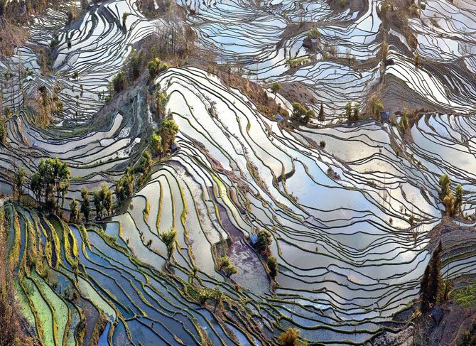 Рисовые поля на сопках! Адский труд, но мало воду поднять надо ее там и удержать.