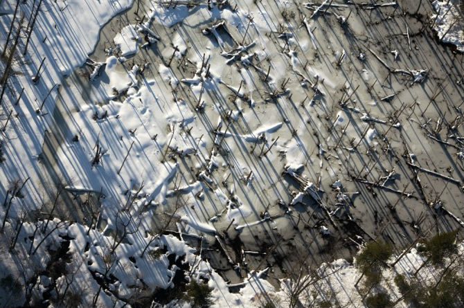 Аэрофотограф Алекс Маклин привык смотреть на мир из кабины небольшого самолёта. Результатом его труда стал фоторепортаж, в котором запечатлелось сложное сочетание искусственных карьеров и природы, животных и промышленности, людей и высших сил, которые явно сильнее, чем мы когда-либо станем.