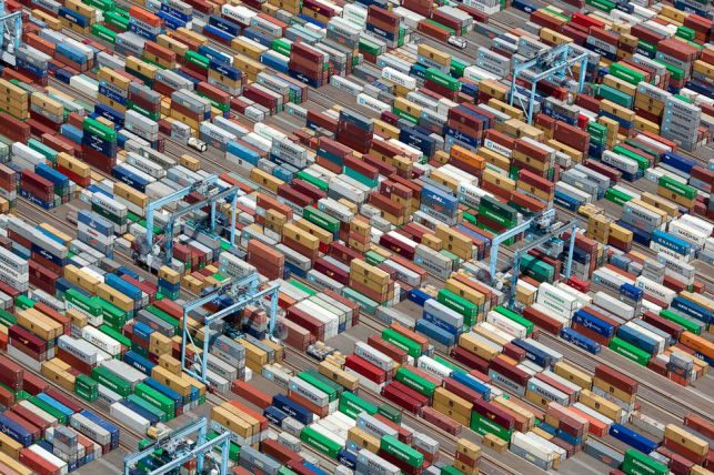 Красочные грузовые контейнеры в Портсмуте, штат Вирджиния, 2011 год.