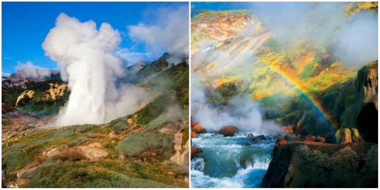 Единственное гейзерное поле в России и Евразии, одно из самых крупных подобных мест в мире. На его поверхности расположено около 20 крупных гейзеров и много горячих источников, выбрасывающих воду или пар.