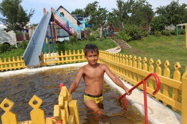 Пенсионер Вячеслав Иванович по собственной инициативе построил «аквапарк». Любой желающий может поплескаться в воде абсолютно бесплатно. Чего тут только нет: горка для спуска в небольшой бассейн, площадка для игры в волейбол и футбольное мини-поле, разные виды качелей, необычная зона для игры в шашки, трамплины для прыжков в воду, деревянные ступеньки для спуска в реку. Все это — дело рук пенсионера.