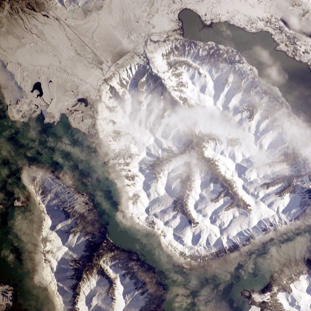Вид с борта МКС на самое глубокое озеро Монголии – Хубсугул. В нем сосредоточено около 2% мирового запаса пресной воды. Хубсугул одно из семнадцати древнейших озер в мире, предположительно, его возраст составляет 5 млн. лет.