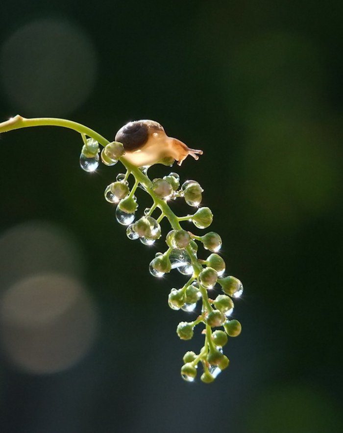 Твердая рука Вячеслава фиксирует невероятные кадры. Поражает также и его терпение. Согласитесь, выждать такие удачные мгновения – дорогого стоит. Тут вам и отношение старших улиток к более младшим и взаимоотношения «ровесников». В общем, на самом-то деле, все эти фантазии являются лишь выдумкой. Каждый волен придумать свою историю к каждой фотографии. Вячеслав Мищенко просто делает небольшие подсказки.