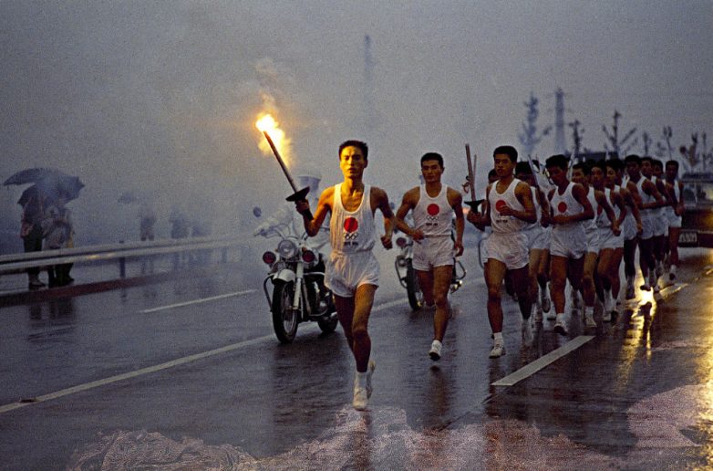 В 1964 году В Токио начались XVIII Олимпийские игры. Факелоносцы на пути к Олимпийскому стадиону. (Фото AP Photo):