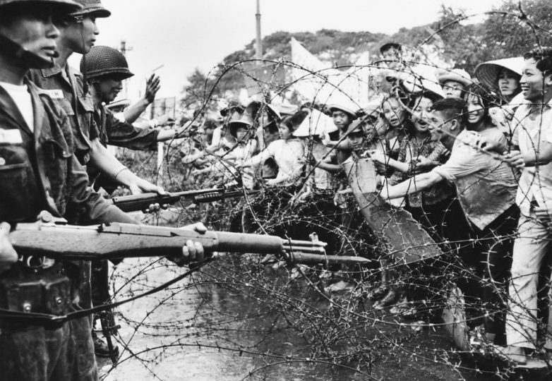 Сайгон — прежнее название города Хошимин, 1964 год. Военные и демонстранты. (Фото AP Photo):