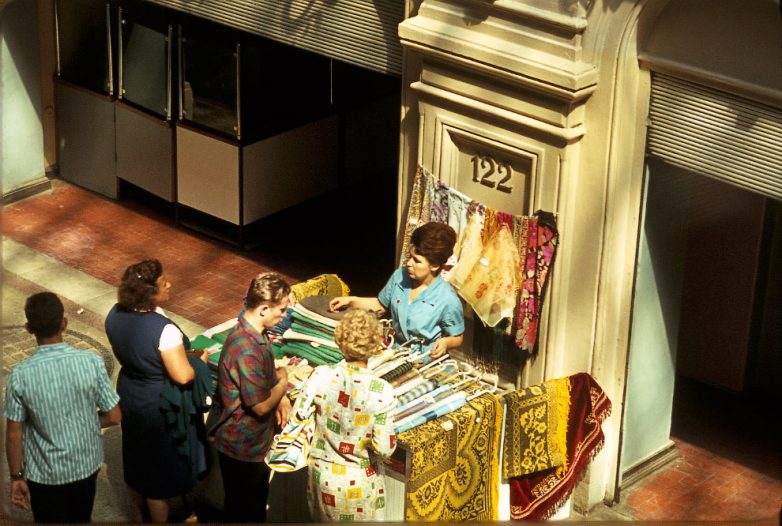 Продавщица тканей в ГУМе, Москва, 1964 год. (Фото Jacques Dupaquier):