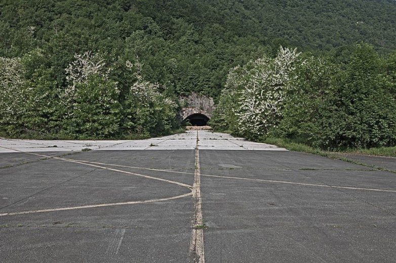 Бывший бункер для военных самолетов в Югославии. Хорватия, 2011 год. Внутри горы находятся тоннели длиной более 3 км: