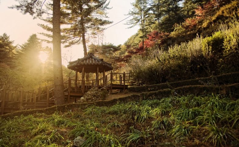 На горном массиве Йонджу, который расположен в восточной части Южной Кореи, ценителей природы приятно удивит Сад Утреннего Спокойствия. Эта яркая достопримечательность страны популярна как среди местных жителей, так и среди туристов.