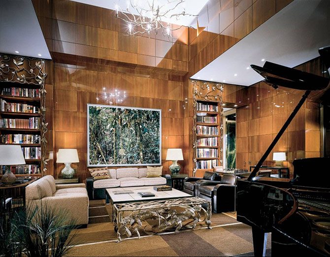 В нем есть шесть спален, кинотеатр, библиотека и кухонный персонал во главе с шеф-поваром.