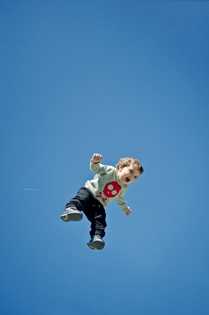 Ребёнок на фоне летящего самолёта-символично..))