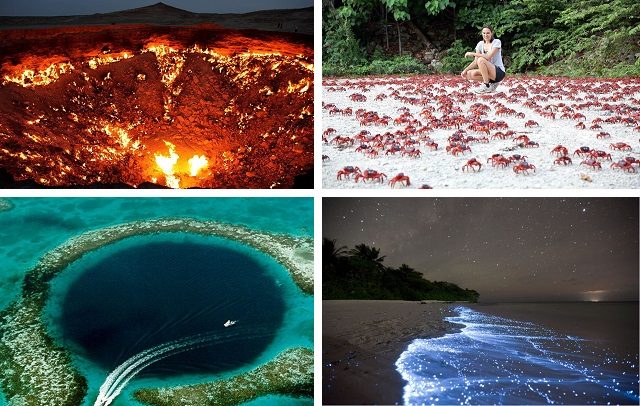 25. Биолюминесцентные волны на мальдивских пляжах. Некоторые виды фитопланктона обладают способностью к люминесценции. Прибиваемые к берегу, маленькие создания начинают светиться, когда их химическая энергия переходит в световую под воздействием волн.