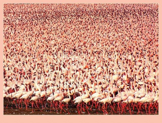 23. Танзанийское озеро Натрон. Соленое озеро, которое питают горячие источники, является единственным местом постоянного размножения малого фламинго.
