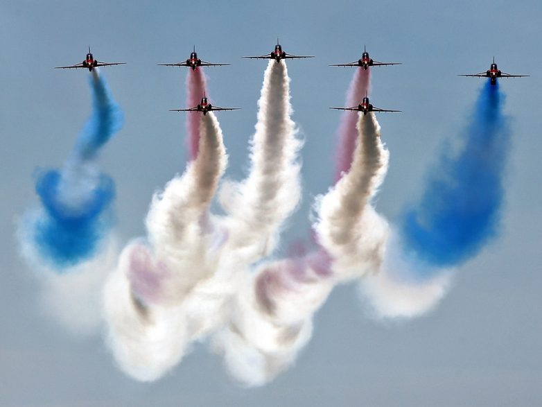 28. Пилотажная группа Red Arrows в небе в честь высадки союзных войск в Нормандии. Портсмут, Англия. (Фото: Getty Images)