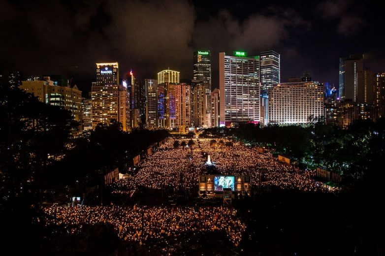 14. В среду вечером десятки тысяч жителей Гонконга приняли участие в памятных мероприятиях в парке Виктория в связи с 25-й годовщиной жестокого подавления студенческих волнений 1989 года. (Фото: AP Photo)