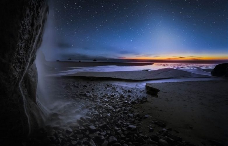 2. Зодиакальный свет на вечернем небе северней Орегона над Тихим океаном. Фоторабота «Ложные сумерки и водопад на побережье штата Орегон» Бена Коффмана заняла второе место в номинации «Красота ночного неба».