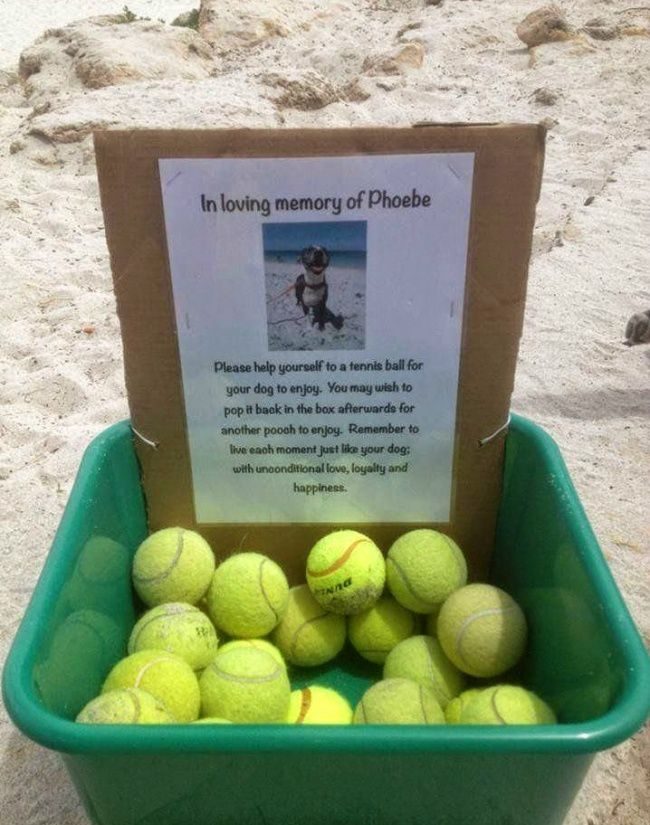 В память о свой собаке хозяин оставил мячики, чтобы каждый мог поиграть со своим питомцем.