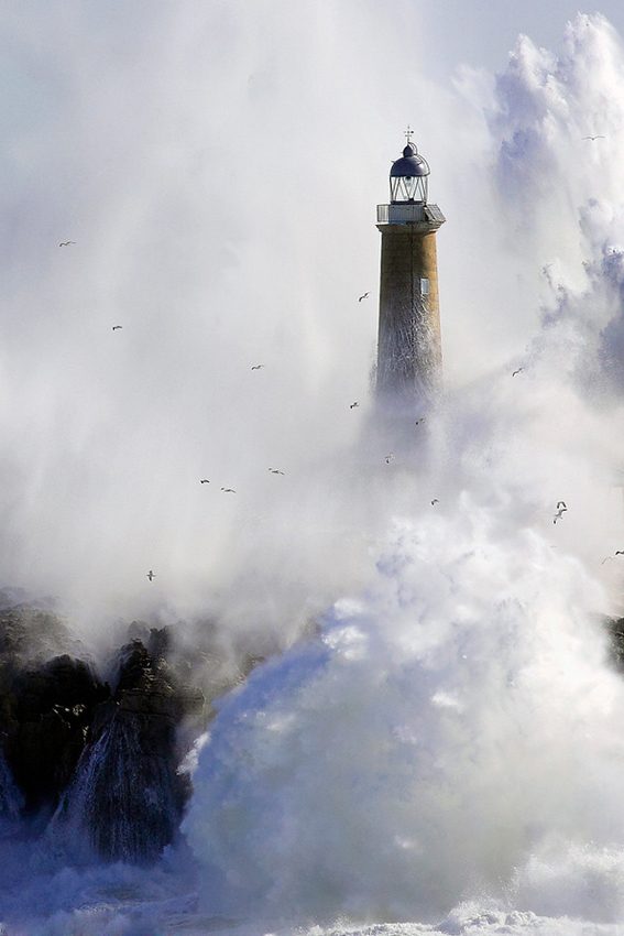 Брызги выше маяка! Его хоть видно при непогоде будет?