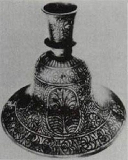 Представляет из себя правильную круглую тонкостенную каменную тарелку с тремя тонкими загнутыми к центру наплывами края и небольшой цилиндрической втулкой посередине. В местах загиба лепестков края к центру окружность диска продолжается тонким ободом круглого сечения около сантиметра в диаметре. Тарелка вызывает ряд вопросов как о непонятном назначении подобного предмета, так и о способе, с помощью которого она была изготовлена. Аналогов не имеет.