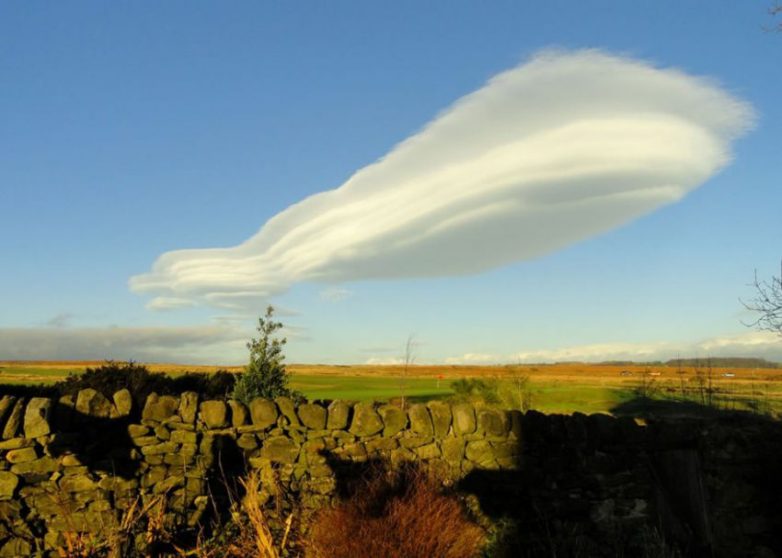 Линзообразное облако во время зимнего солнцестояния над Бэйлдор Мур, Йоркшир.
