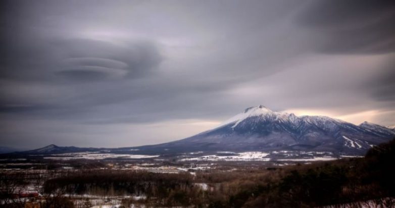 Линзообразное облако вокруг горы Ивате, стратовулкана в Японии