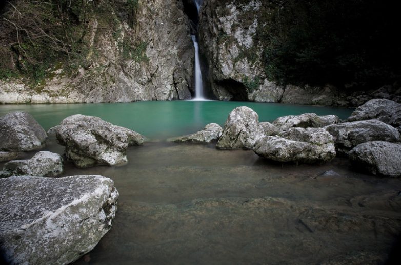 Каскад водопадов, расположенных на реке Агура в Хостинском районе города Сочи. Расстояние от берега Чёрного моря — 4 км. Далее вверх по течению реки — Средний водопад, потом Верхний.