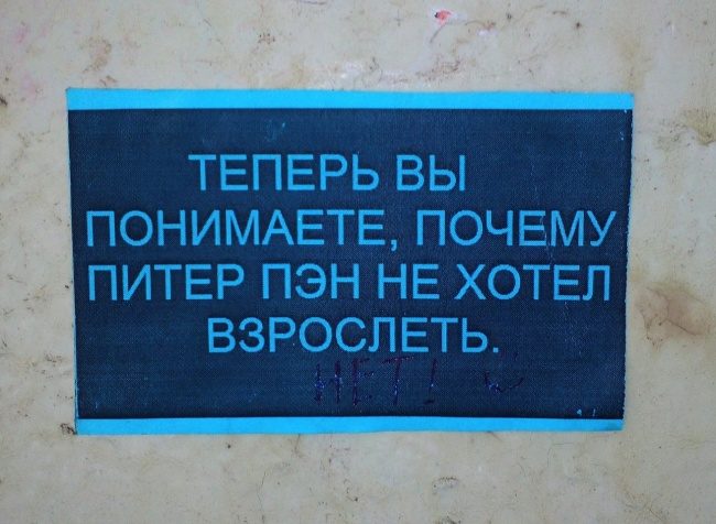 Россия — страна талантливых людей. В каждом доме, дворе или подъезде нашей необъятной Родины обязательно найдутся люди, которые делают жизнь окружающих пусть немного, но веселее. Они не заканчивали художественных академий, но это не мешает им творить, писать шедевральные объявления, разрисовывать стены, бороться за справедливость и отвоевывать подъезды.