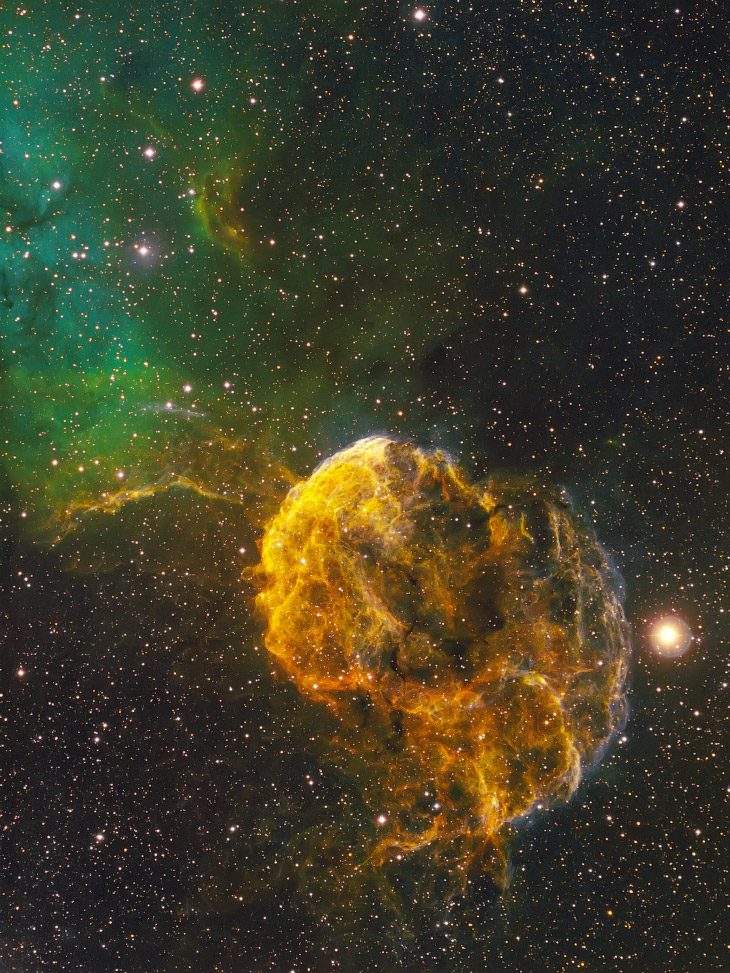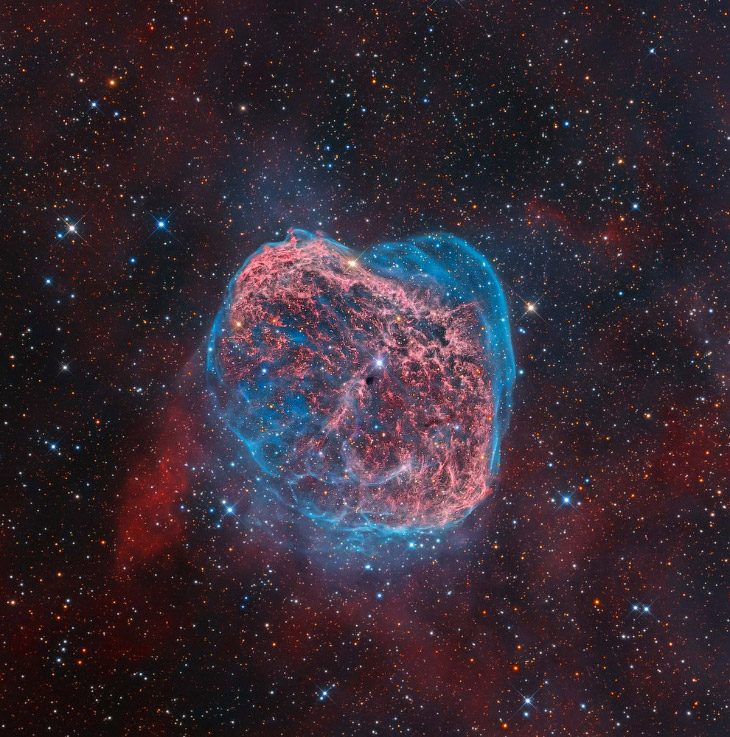 1. Планетарная туманность Медуза является частью остатка сверхновой. Свет от этого взрыва достиг планеты Земля более 30 тысяч лет назад. Туманность находится на расстоянии примерно в 5000 световых лет от Земли в созвездии Близнецов. (Фото Astronomy Photographer of the Year | Bob Franke):