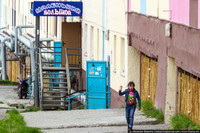 По той же самой, климатической, причине, все входы в подъезды расположены очень высоко. Чтобы не тащить в квартиру, коляски и велосипеды хранят внизу. И никто не берёт, не ворует. Странно? Тогда внимательно присмотритесь к окнам первых этажей: во всём городе на окнах нет решёток!!! Это было настолько сильным откровением, хотя всё понятно: Анадырь безопаснее любого другого города России, они же здесь почти на острове, не скрыться. И именно поэтому, отчасти, местные жители противятся снятию статуса погранзоны.