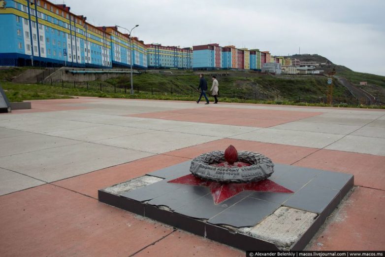 Предлагаю присмотреться к домикам. Почти все они построены в пять этажей, и абсолютно все — на сваях. То есть, Анадырь такой же Пятиэтаженск, как, скажем, Петропавловск-Камчатский, но раскрашен куда ярче, и ощущение гнетущего совка и тлена здесь меньше ощущается.
