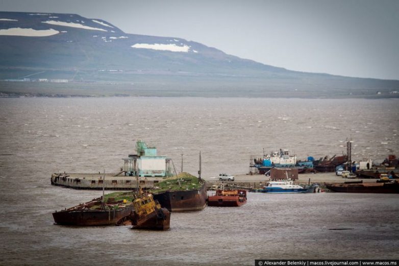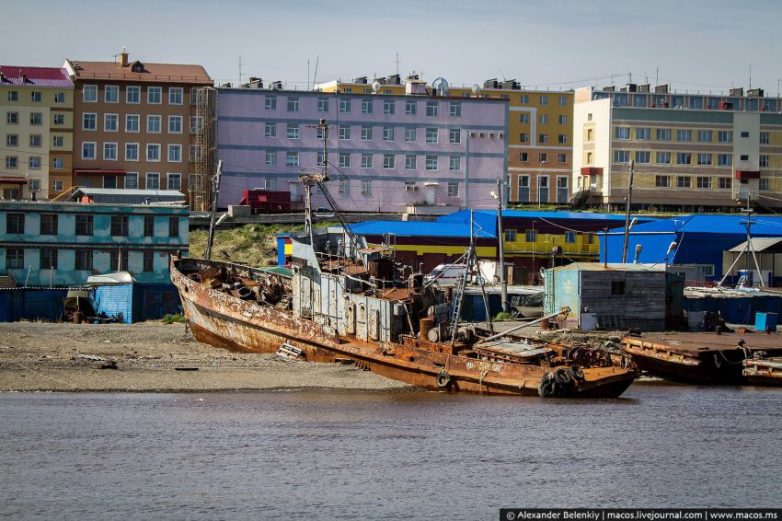 Хотя здесь всё это не выглядит отталкивающим. Удивляясь сам себе, я находил оправдание почти всему, что могло бы не понравиться и что жутко бы бесило в нашей широте. Ну, это же так далеко! Это же край Земли! Суровая Чукотка!.. По чесноку, ржавые корабли на фоне покрашенных домов смотрятся ужасно, и их нужно убрать куда-нибудь.