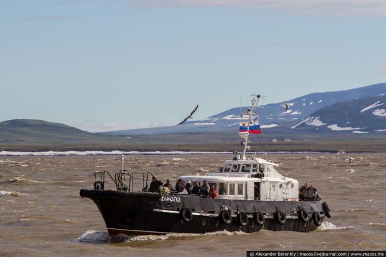 Прилетая в аэропорт Анадыря, вы оказываетесь по другую сторону залива от самого города. И добраться в чукотскую столицу, та ещё эпопея, доступная не в каждый сезон. Нам повезло: прилетев коротким северным летом, мы застали морскую навигацию на корабле “Камчатка”. Лютой зимой можно по льду, на катере с воздушной подушкой, а в межсезонье — только на вертолёте. И поездочка в аэропорт или просто в посёлок по делам может обойтись вам в 2500 рублей в одну сторону. Катер же стоит сущие копейки, всего сто рублей. Но даже летом его могут отменить, например, из-за шторма.