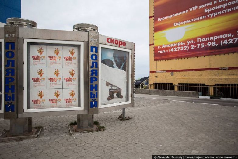 На торцах некоторых домов повесили тематически плакаты про красоты Чукотки. Это хороший пример использования пустующего пространства. Главное, чтобы не рекламой завешивали.