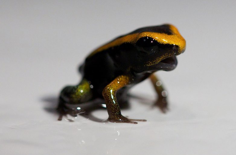 5. Эти лягушки известны как древолазы. Но по-английски они называются poison dart frog — «лягушка — ядовитая стрела». Такое название дано амфибиям неспроста: их кожные выделения содержат смертельный нейротоксин (брахиотоксин). Индейцы, живущие в тех местах, где водятся подобные лягушки, используют их слизь для охоты, смазывая ею наконечники стрел и дротиков. Но этот древолаз относится к вымирающим видам, и впервые родился в Лондонском океанариуме после долгой специальной программы по их разведению. (Фото Andrew Cowie | AFP | Getty Images):