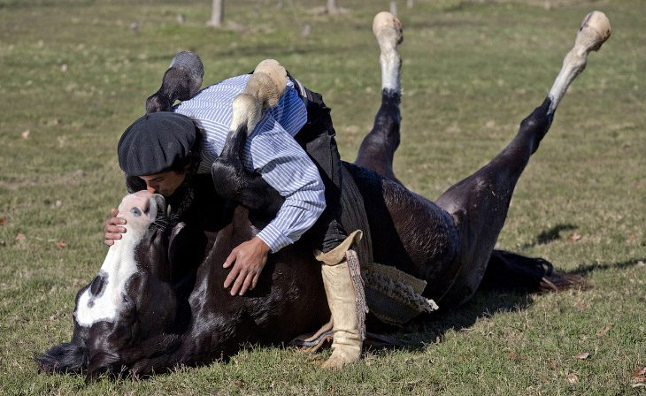 21. Настоящая любовь. Дрессировщик Мартин Тата из Аргентины считает, что с лошадями нужно разговаривать без криков, кнутов и уздечек. (Фото AP Photo | Natacha Pisarenko).