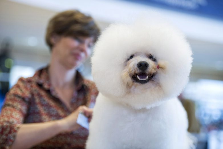 11. Выставка собак в Эрфурте, Германия, 14 июня 2014. Это бишон-фризе — французская маленькая порода собак. B переводе название собаки переводится как Кучерявая болонка. (Фото Jens Schlueter | Getty Images):